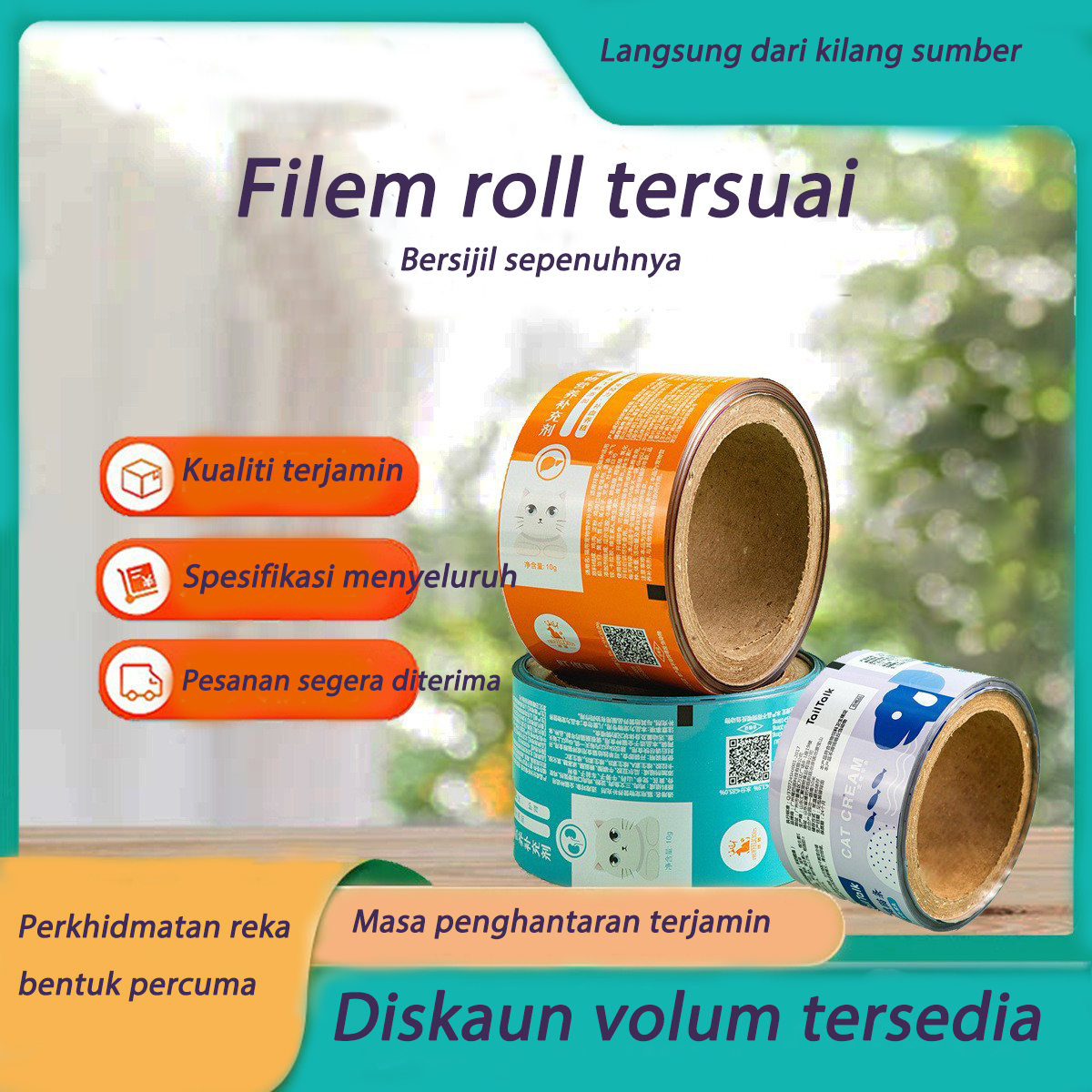 定制塑料包装膜卷|专为食品/工业/美容用途设计的高防潮性/公司品牌